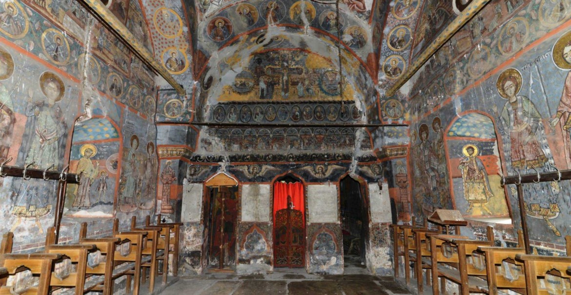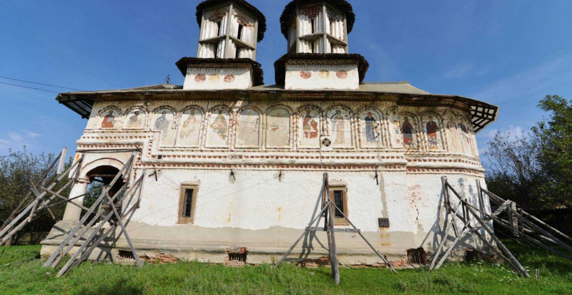 De-a lungul timpului a suferit câteva intervenții mai mult sau mai puțin salvatoare: 1) în anul 1899 a fost reparată și acoperită; 2) după cutremurul din 1940, care i-a produs mai multe fisuri a fost legată în fier; 3) în anul 1970 s-a intervenit cu o subzidire tip blocuri beton nearmat, suprabetonarea calotelor, centuri pe ziduri și în pod la baza turlelor, fixarea în centuri exterioare vizibile a turlelor; 4) în urma cutremurelor din 1977 și 1986 în urma unui proiect de consolidare, în anul 1990 s-a executat un sistem complex de contraforți subterani armați asociați între ei cu legături de tiranți și sprijiniri exterioare; 5) în anul 2006 s-au refăcut sprijinirile exterioare și s-a executat o învelitoare provizorie. Lucrările s-au întrerupt în această fază din lipsa de fonduri.
